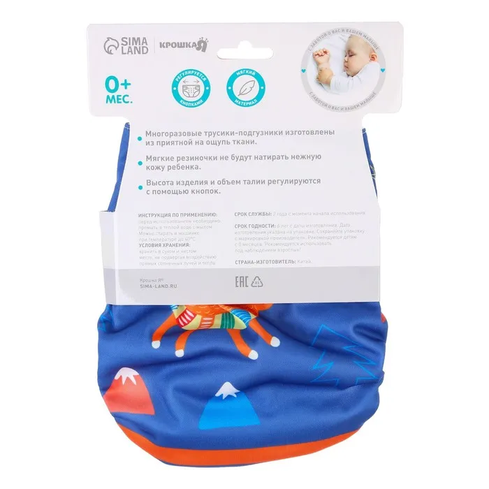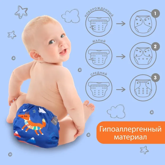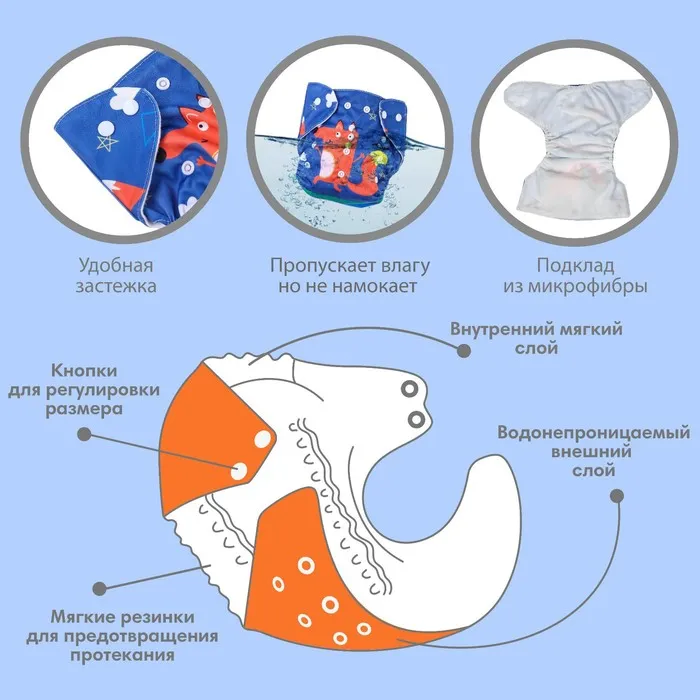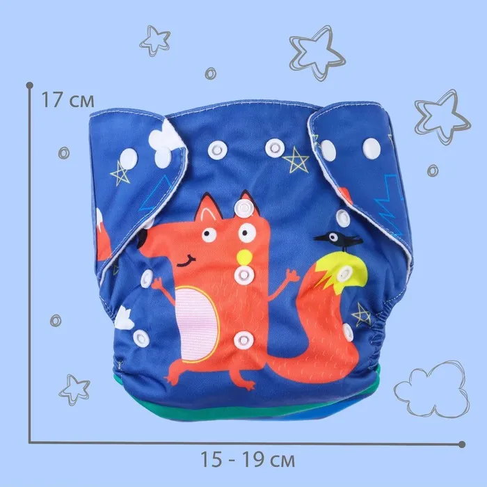Многоразовый подгузник «Лисичка», 3-15 кг, синий, Крошка Я — Характеристики
