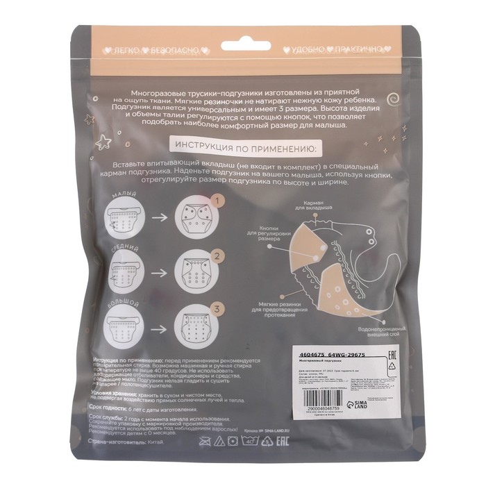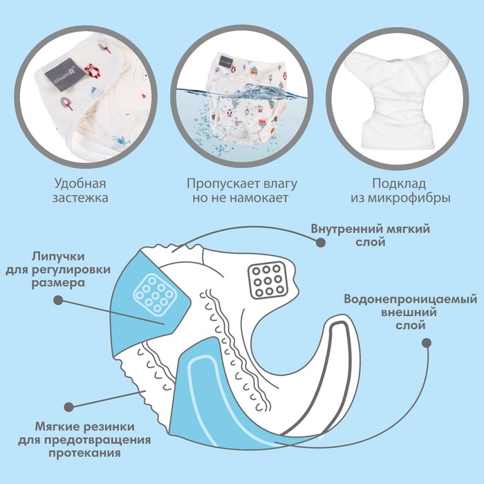 Многоразовый подгузник «Лисички», 3-8 кг, цвет белый, Крошка Я — Характеристики