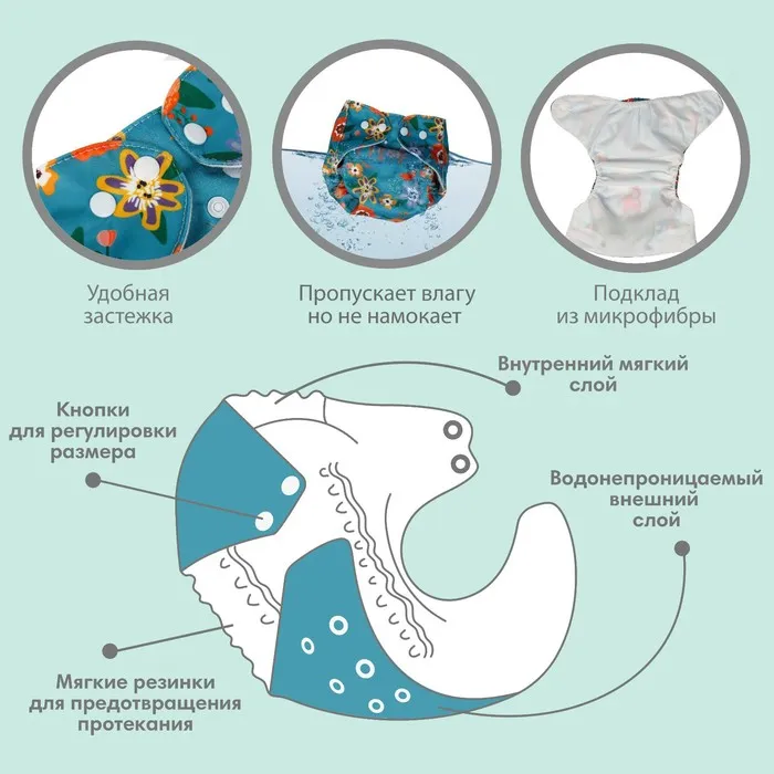 • Размер подгузника универсальный, подходит для детей от 3 до 15 кг, от рождения до 3 лет;