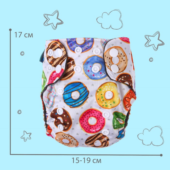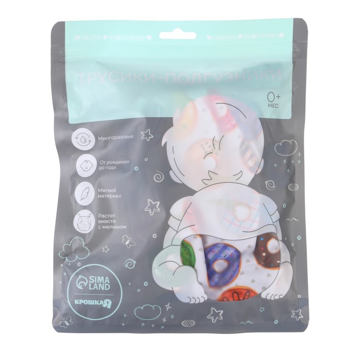 Многоразовый подгузник «Пончики», 3-8 кг, угольно-бамбуковая ткань, Крошка Я — Характеристики
