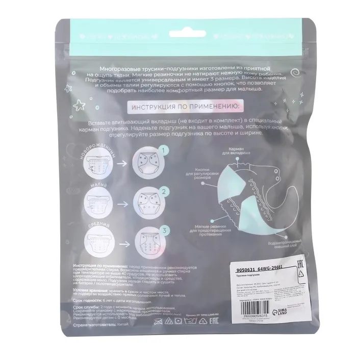 • Размер подгузника универсальный, подходит для детей от 3 до 15 кг, от рождения до 1 года;
