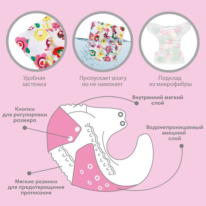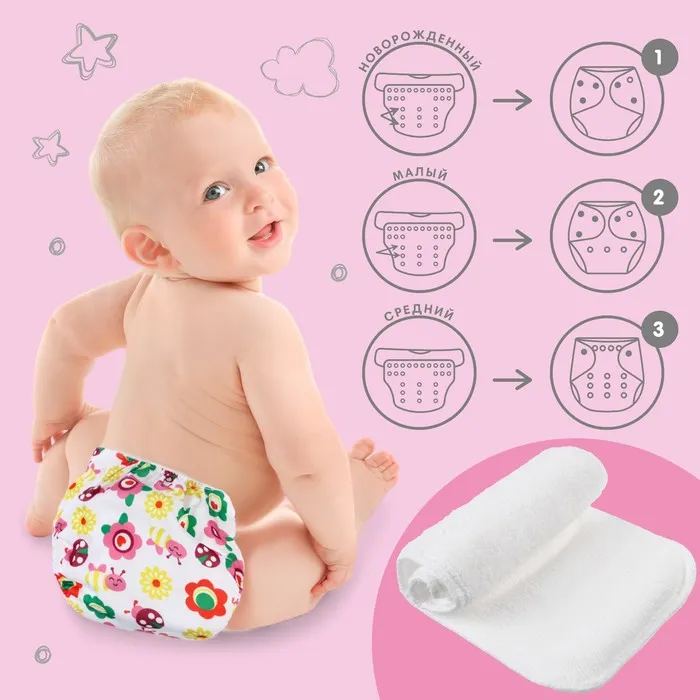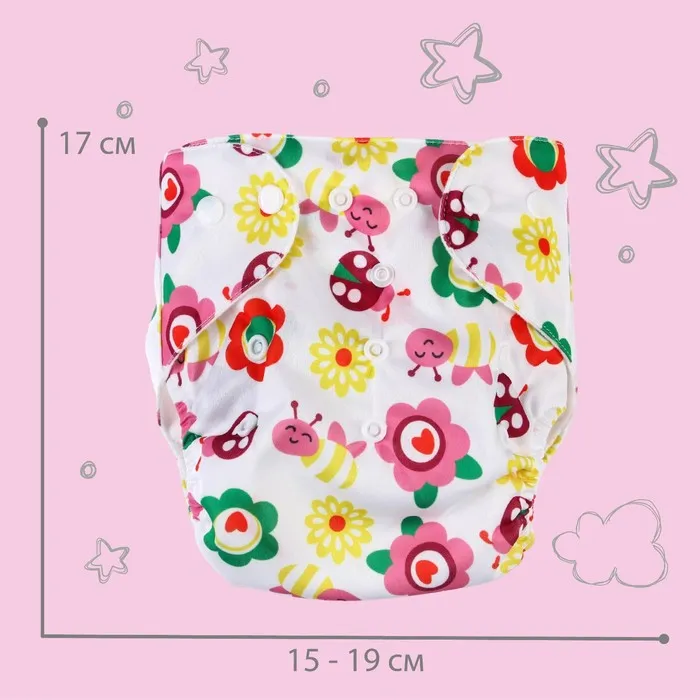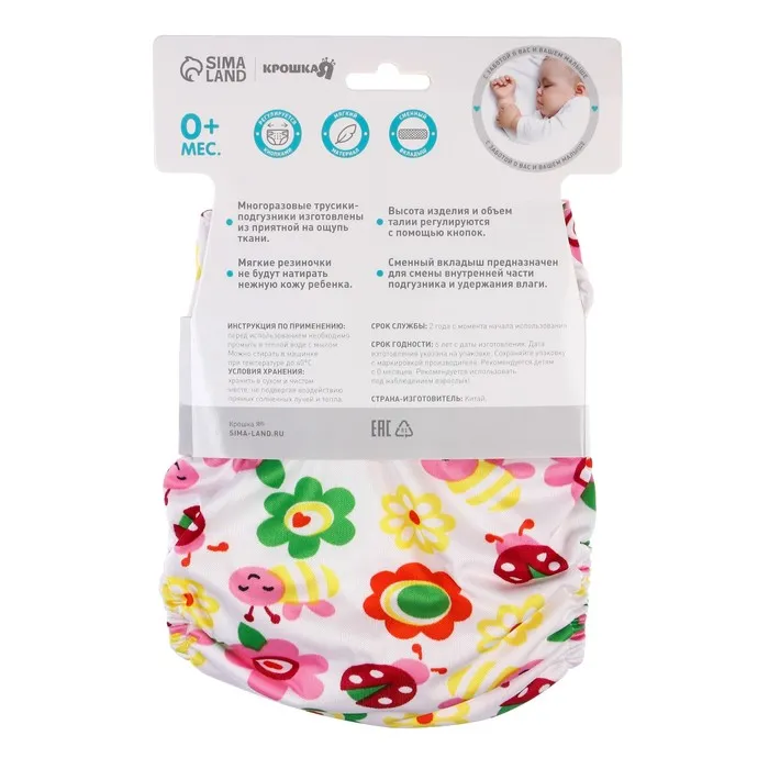 Многоразовый подгузник с 3-х слойным вкладышем Крошка Я «Цветочки», 3-15 кг — Характеристики