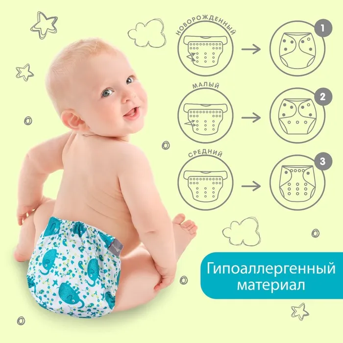 Многоразовый подгузник «Слоники», 3-15 кг, Крошка Я — Характеристики