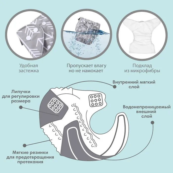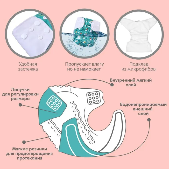 • Размер подгузника универсальный, подходит для детей от 3 до 15 кг, от рождения до 3 лет;