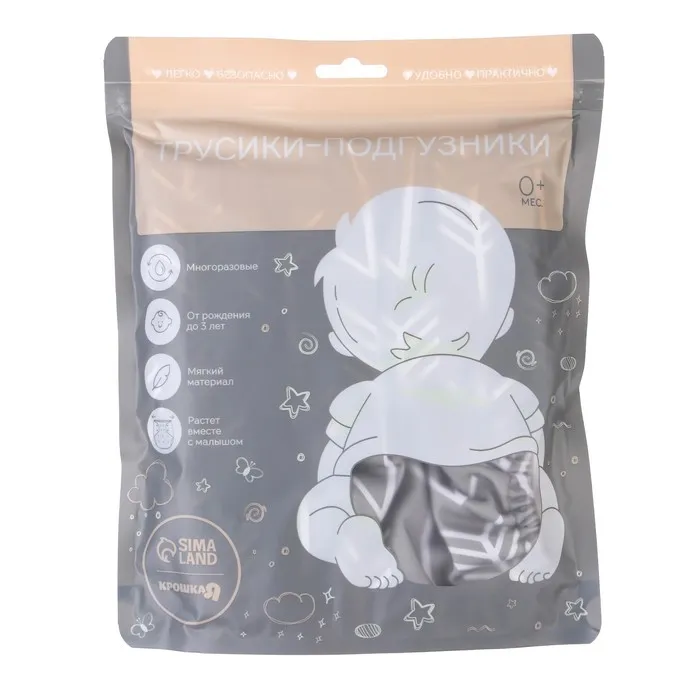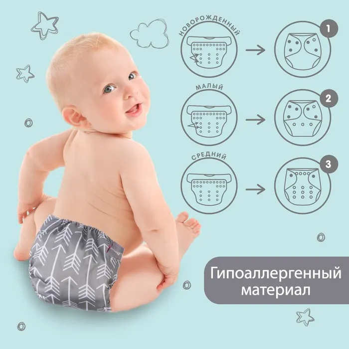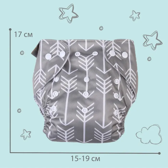 Многоразовый подгузник «Стрелы», 3-15 кг, серый, Крошка Я — Характеристики