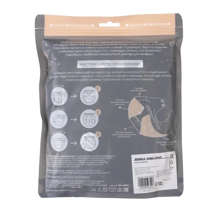 • Размер подгузника универсальный, подходит для детей от 3 до 15 кг, от рождения до 3 лет;
