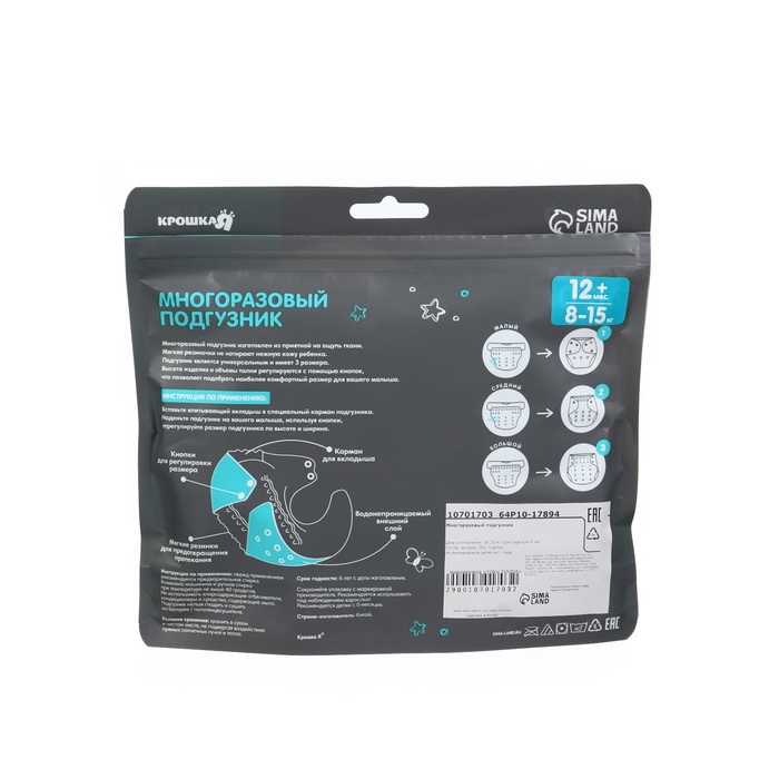 Многоразовый подгузник Sweet baby, 3-8 кг, бирюзовый, Крошка Я — Характеристики