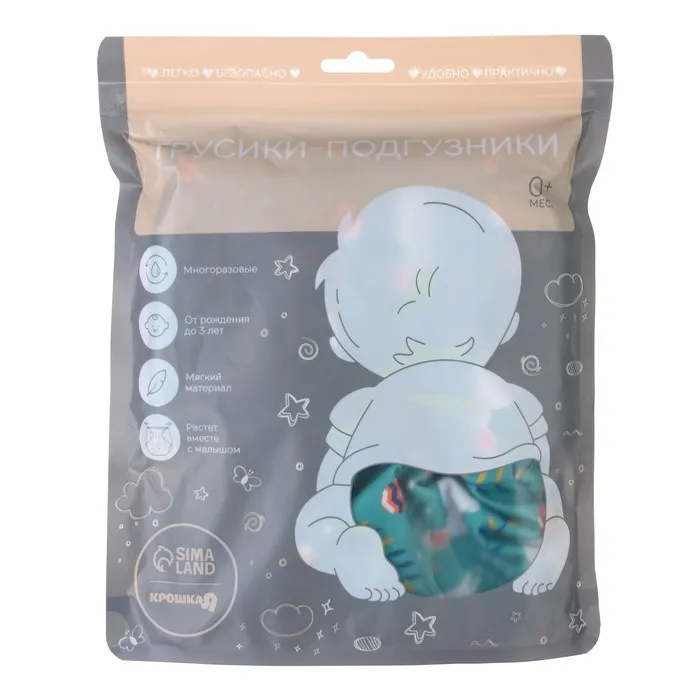 Многоразовый подгузник «Зайка», 3-15 кг, зеленый, Крошка Я — Характеристики
