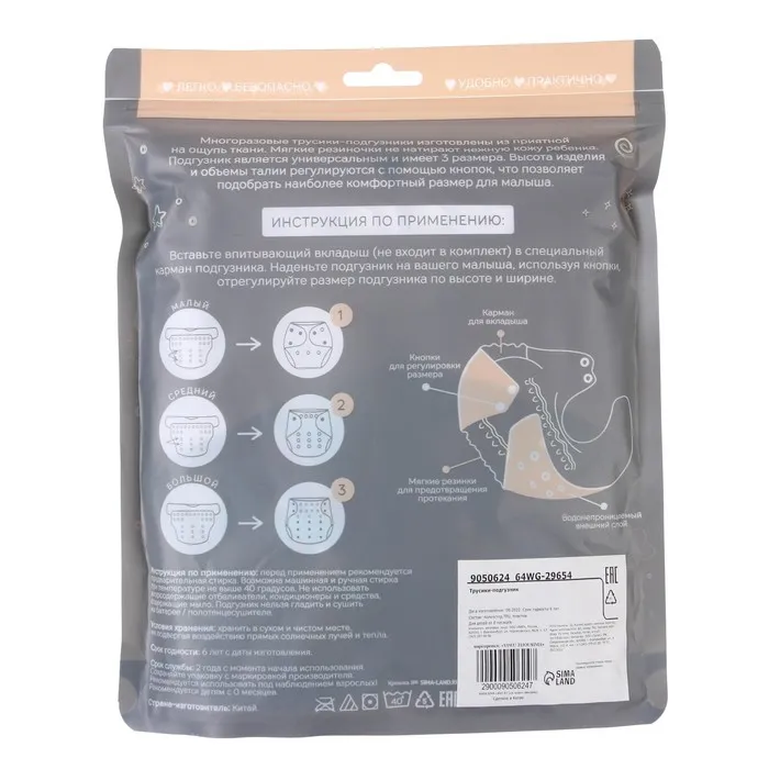 • Размер подгузника универсальный, подходит для детей от 3 до 15 кг, от рождения до 3 лет;