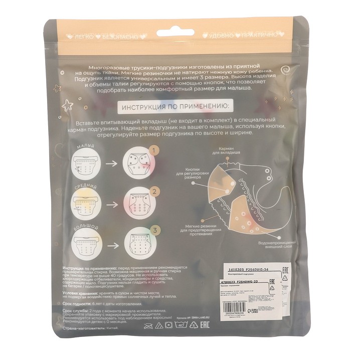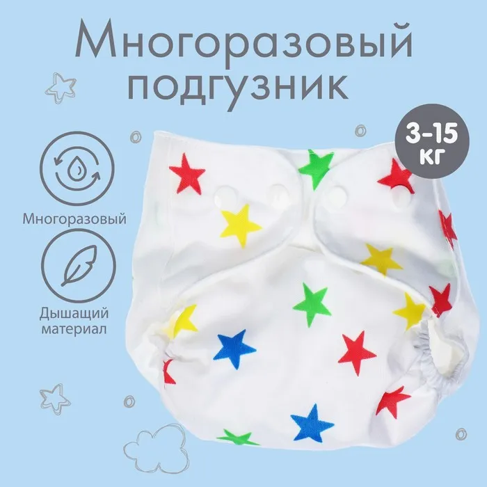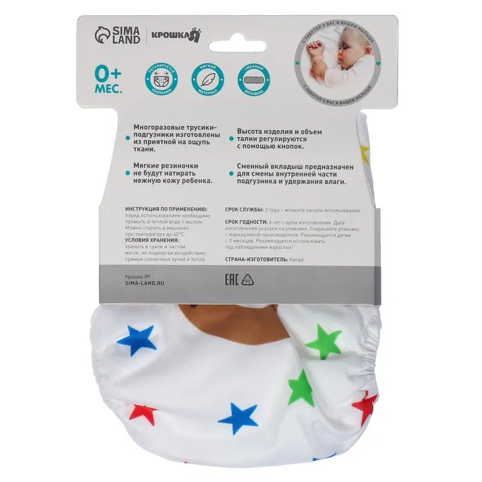 Многоразовый подгузник «Звезды. Мишка», Крошка Я — Характеристики