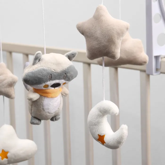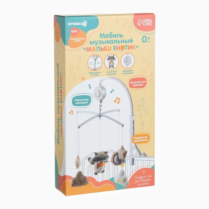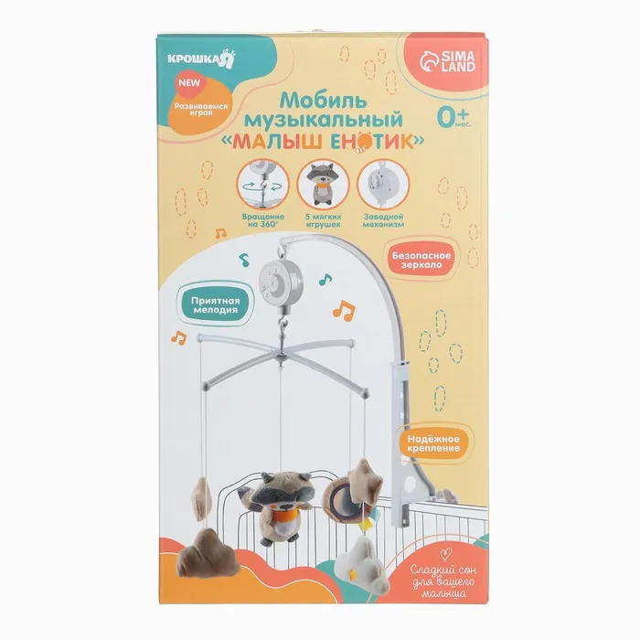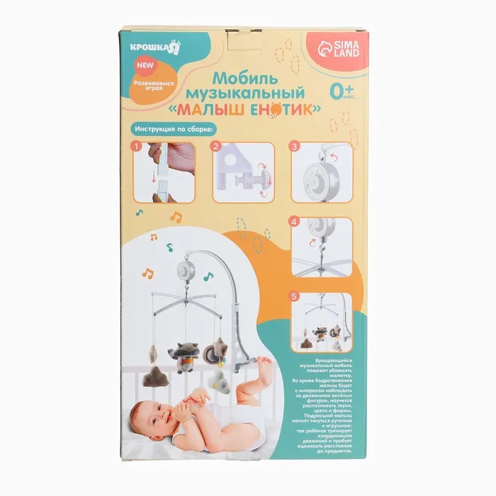 Мобиль музыкальный на кроватку Крошка Я «Енотик», заводной, мягкие игрушки — Характеристики