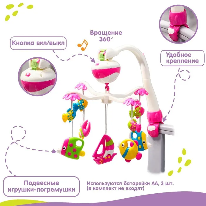 Мобиль музыкальный на кроватку Крошка Я «Кораблик», на батарейках, виды МИКС — Характеристики