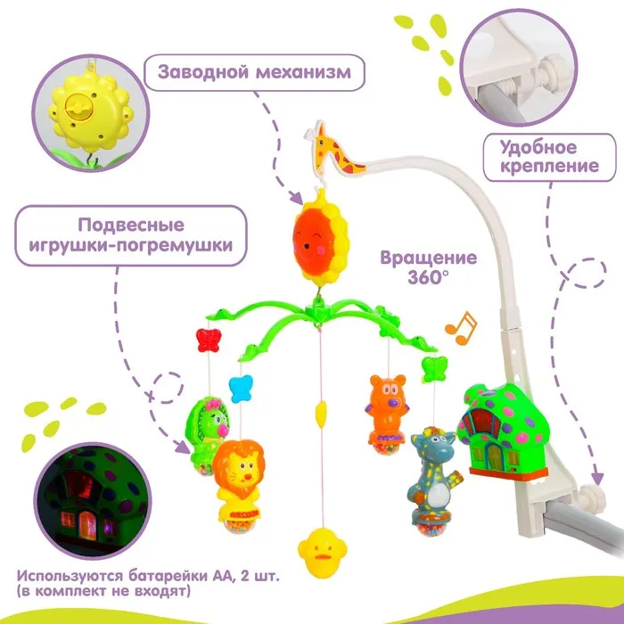 Мобиль музыкальный на кроватку Крошка Я «Пряничный Домик. Жирафик», заводной — Характеристики