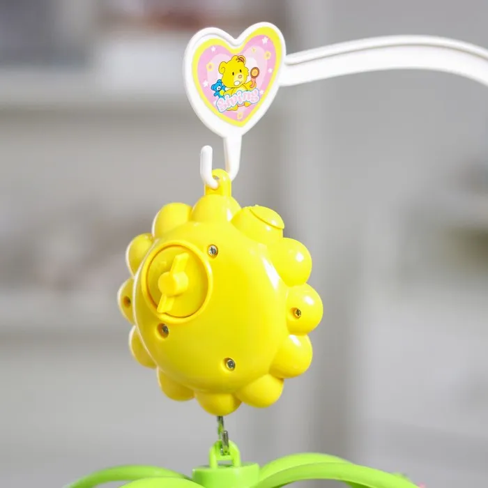 - Заведите механизм — мобиль проиграет колыбельную и начнёт плавно вращаться. Это успокаивает малыша и развивает зрительное восприятие.