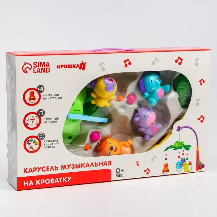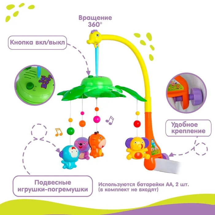 Мобиль музыкальный на кроватку «Музыкальные листья. Джунгли», на батарейках, цвет МИКС — Характеристики