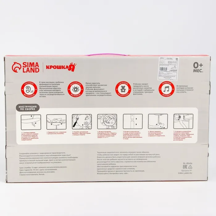 Мобиль на кроватку, проигрывающий колыбельные мелодии, отличная игрушка и подарок для малыша от 0 мес. Его можно прикрепить с помощью кронштейна, который идет в комплекте, на кроватку или коляску. Основа с игрушками вращается на 360 градусов. Все погремушки съемные, ими можно играть по отдельности, а также их очень удобно мыть. Мобиль работает от батареек