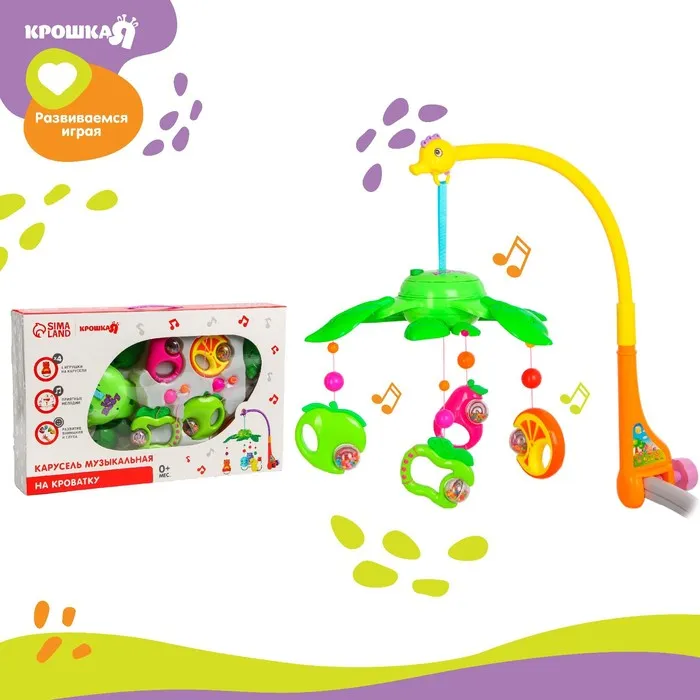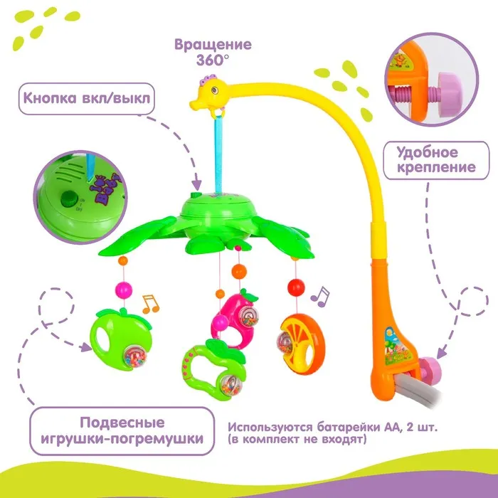 Мобиль музыкальный на кроватку «Музыкальные листья. Фрукты», на батарейках — Характеристики