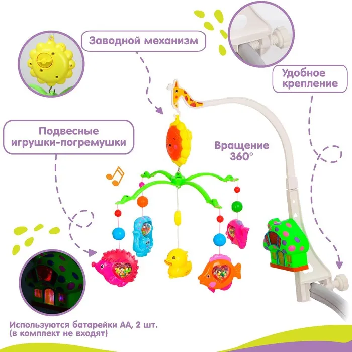 Мобиль музыкальный на кроватку «Пряничный Домик. Морской мир», заводной, Крошка Я — Характеристики