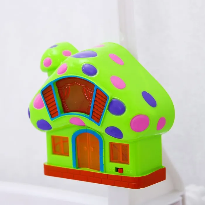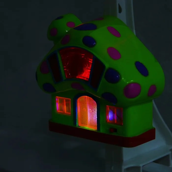 - Заведите механизм — мобиль проиграет колыбельную и начнёт плавно вращаться. Это успокаивает малыша и развивает зрительное восприятие.