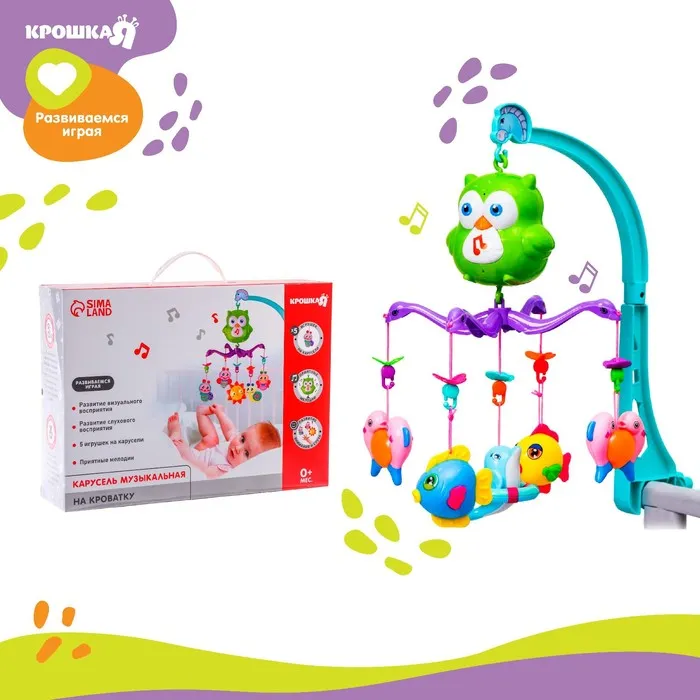 Мобиль музыкальный на кроватку «Совушка», работает от батареек, Крошка Я — Характеристики