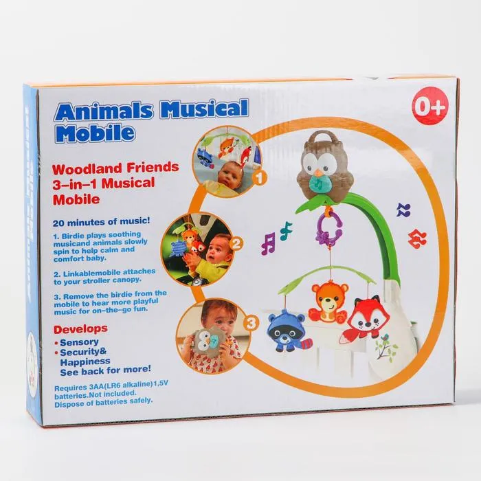 Мобиль музыкальный на кроватку «Тропический лес. Совушка», 3 игр., на батарейках, съемный муз.блок — Характеристики