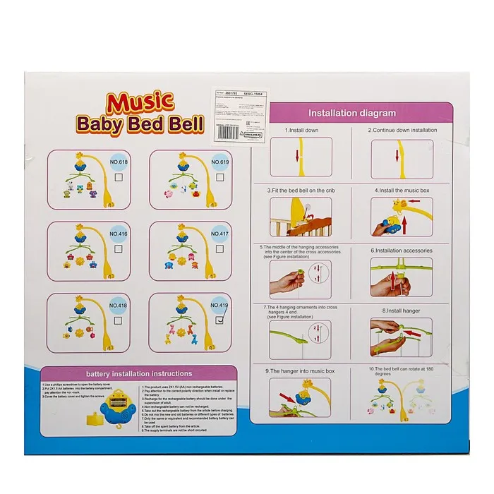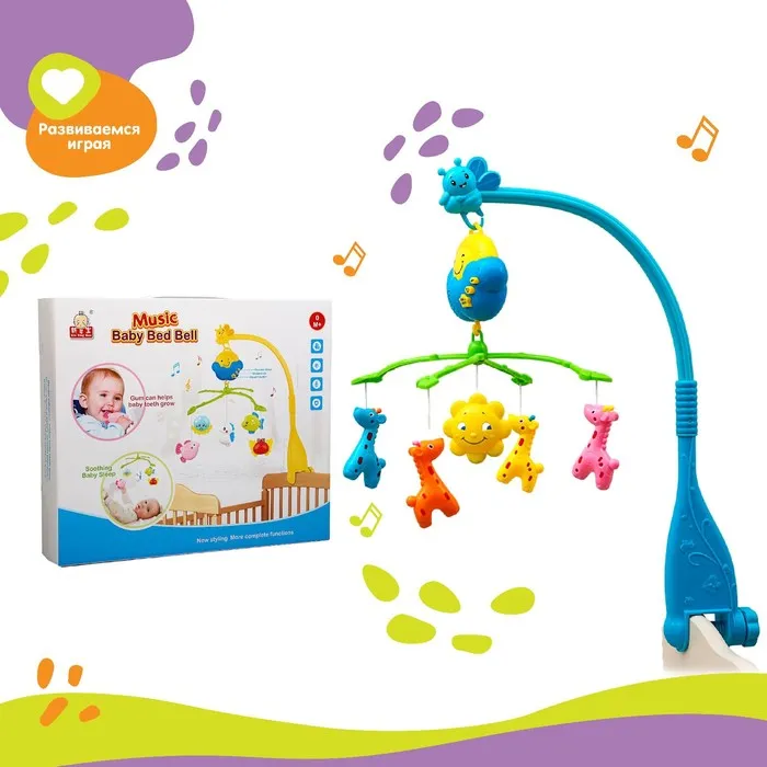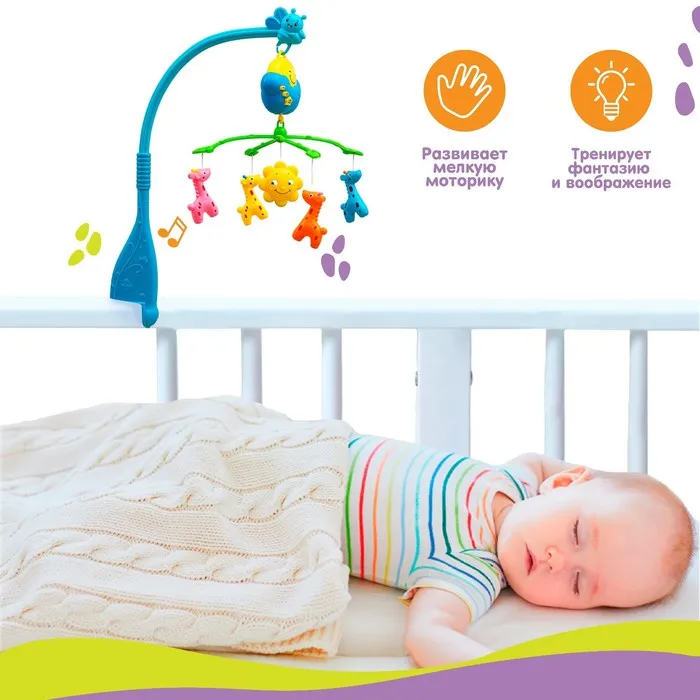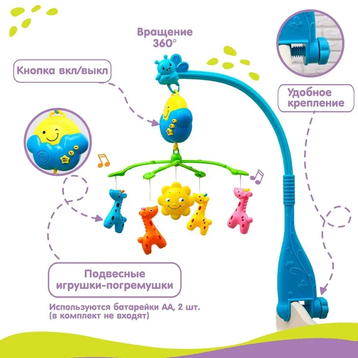 Мобиль музыкальный на кроватку «Жирафики», работает от батареек — Характеристики