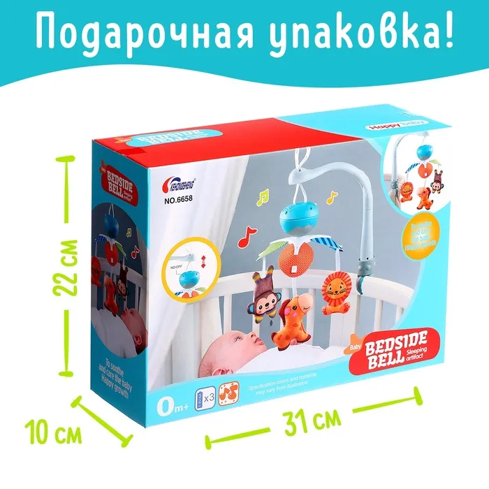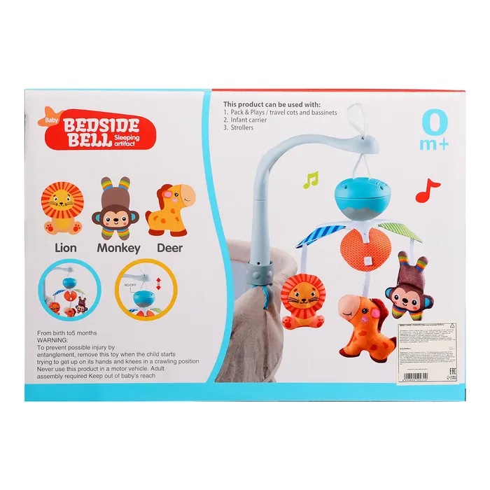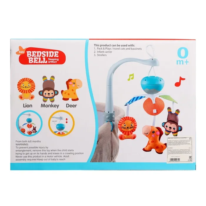 Музыкальный мобиль «Весёлые зверята» — это простой и удобный аксессуар для детской кроватки, который подарит малышу первые звуки музыки и поможет развивать зрительное восприятие. Благодаря использованию безопасных материалов, игрушка подойдёт для самых маленьких.