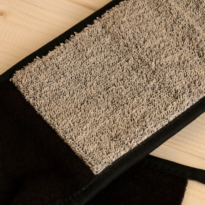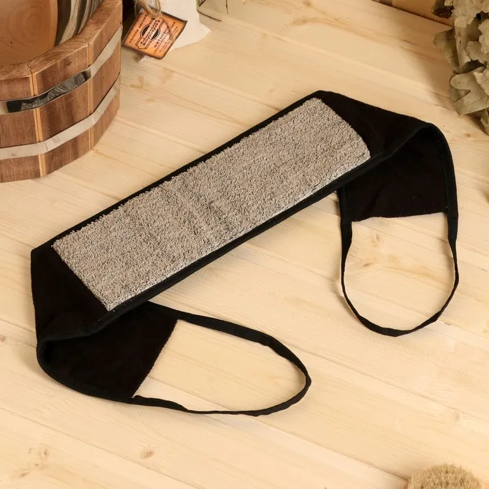 Мужская банная мочалка из натурального льна с удобными ручками. Прочная ленточная конструкция длиной 70 см обеспечивает эффективное очищение кожи. Классические цвета - серый и черный - подчеркивают строгий мужской стиль.