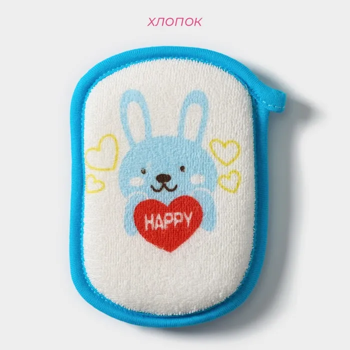 Мочалка детская для купания Доляна «Заяц», 12×8 см, цвет синий — Характеристики