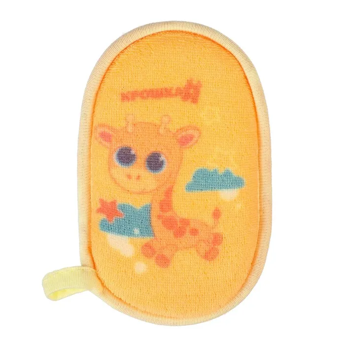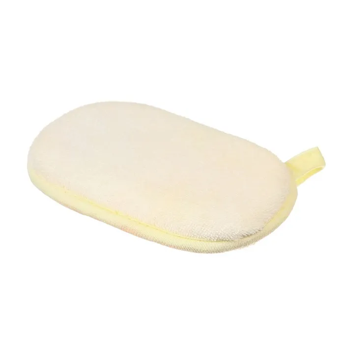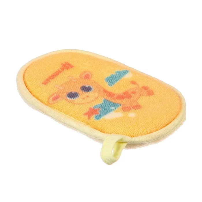 Мягкий и ворсистый материал мочалки бережно очистит нежную кожу малыша, а петелька в её нижней части подойдёт для удобного и практичного хранения.