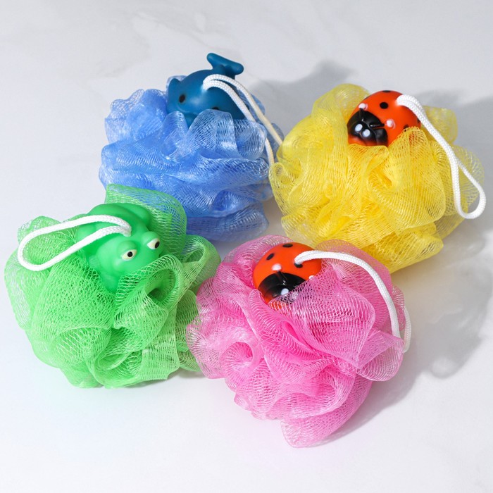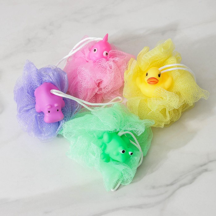 - Забавный дизайн: милые зверушки на мочалке делают процесс купания увлекательным и веселым, превращая его в игру.