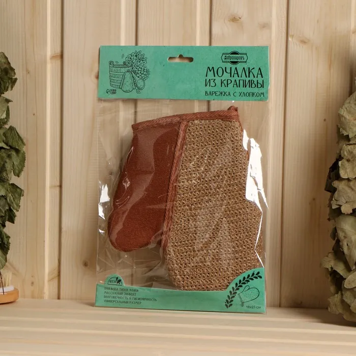 Мочалка из рами, варежка с хлопком, 18*21 см