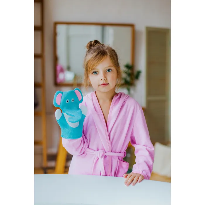 - Мягкий текстиль: варежка изготовлена из качественного материала, обеспечивая бережный уход за нежной кожей малыша.