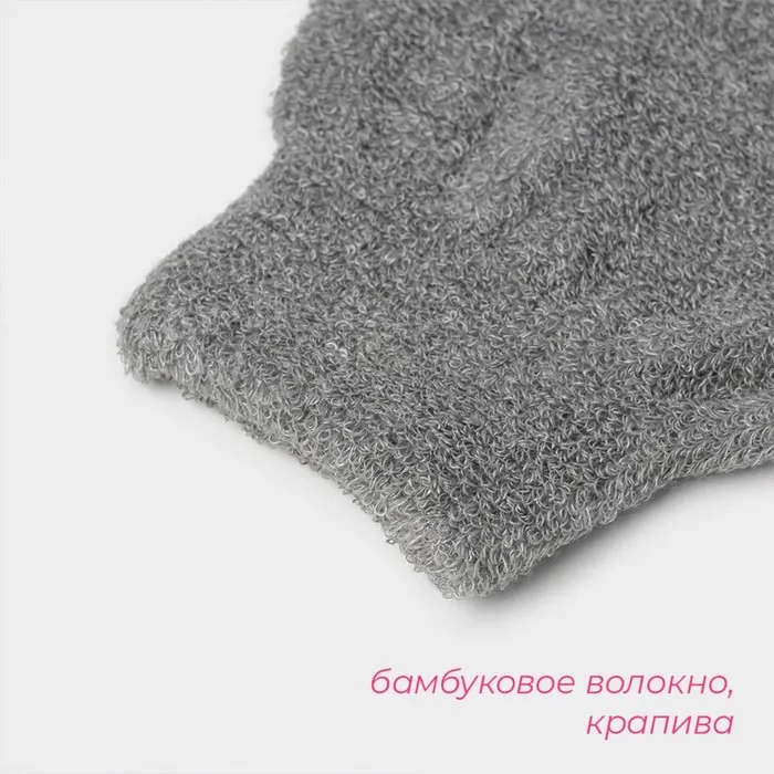 Мочалка-варежка для тела массажная Доляна, 21×11,5 см, бамбуковый уголь, китайская крапива, серая — Характеристики
