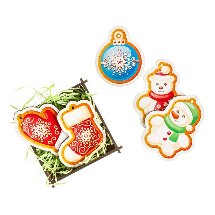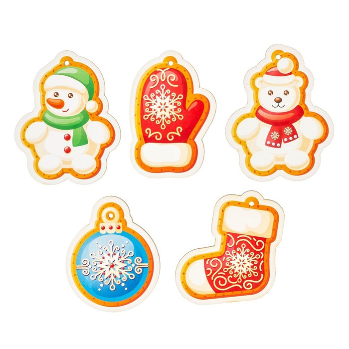 Елочные игрушки «Зимние узоры», 5 деталей, деревянные