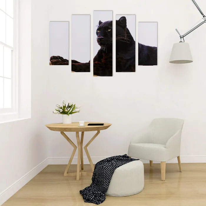 Модульная картина "Гордый леопард" (2-23х52; 2-24х70; 1-24х80) 120х80см