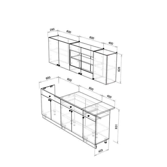 Примечание: Столешницы раздельные.