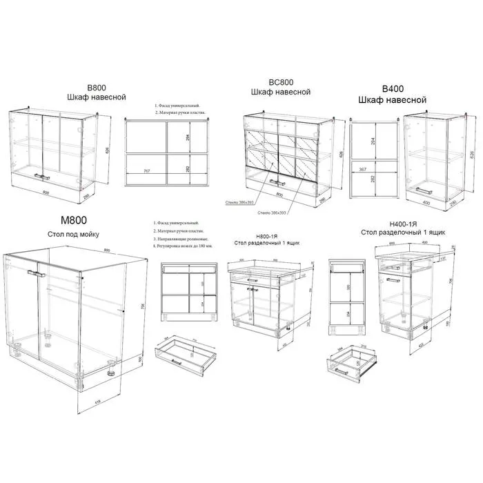 Модули для кухонного гарнитура ШимоКухонная мойка, стеновая панель, решётка для посудосушителя, приобретаются отдельно.