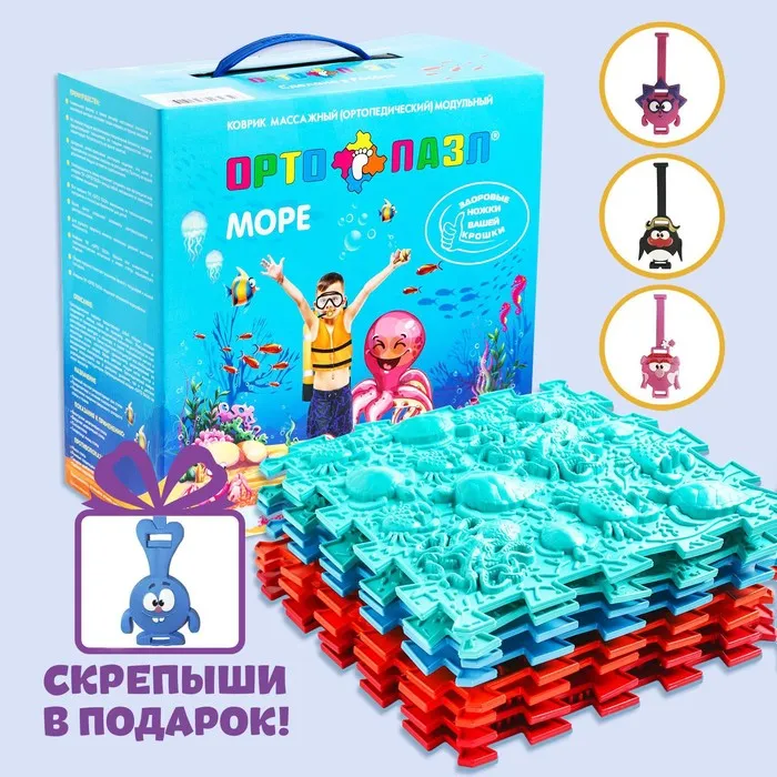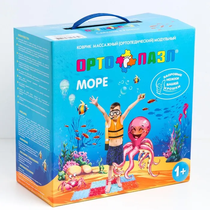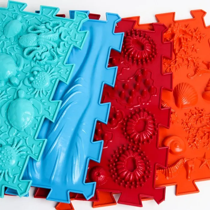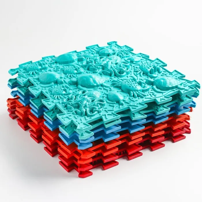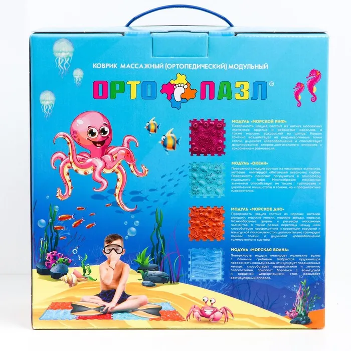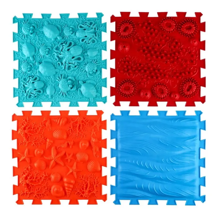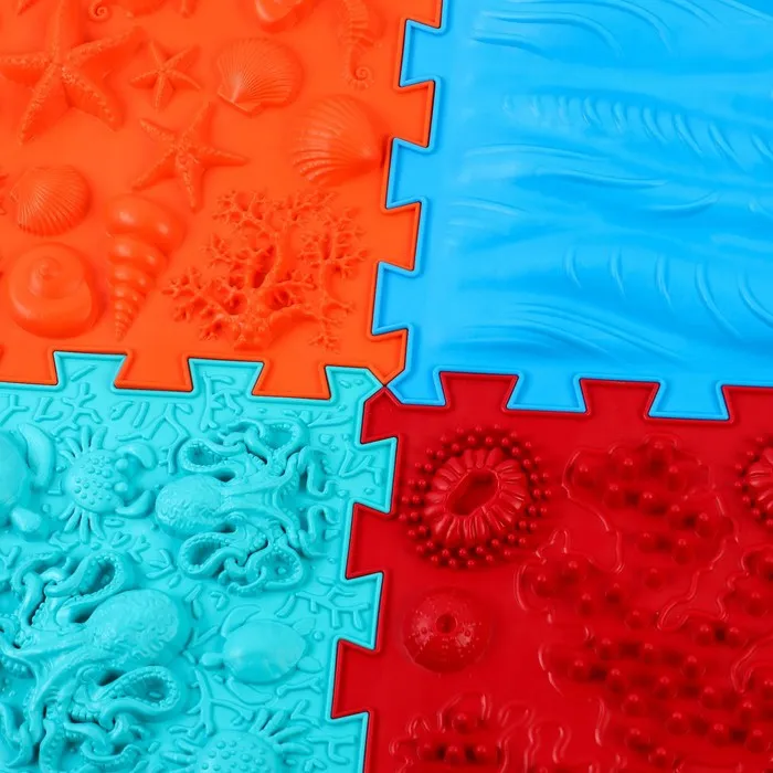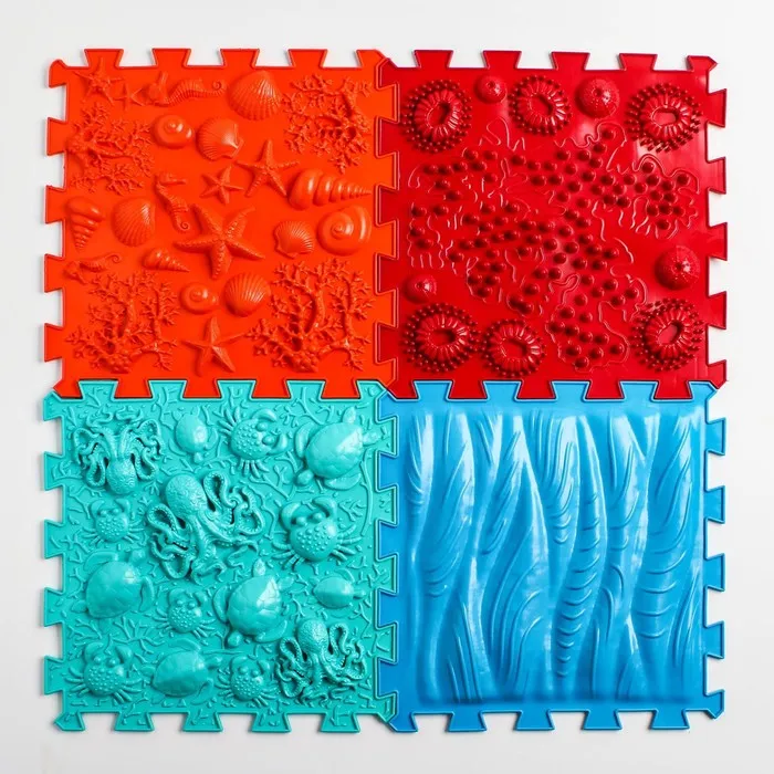 Модули отличаются по типу покрытия. «Морское дно» повторяет очертания ракушек, кораллов и звёзд. «Океан» тоже сочетает массажные элементы в виде подводных обитателей. Два этих пазла имеют поверхность средней степени жёсткости. Занятия на них тренируют мышцы ног, эффективно прорабатывают всю поверхность подошвы стопы.