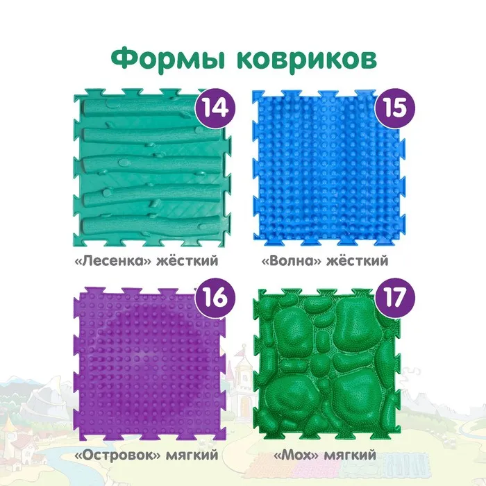 Ортопедическое напольное покрытие состоит из отдельных модулей, которые соединяются между собой по принципу пазла. По массажному коврику можно ходить или выполнять упражнения, стоя на нём. Во время занятий стимулируются рецепторы на стопе и формируются её физиологические своды. Изделие применяется для профилактики плоскостопия у детей, массажа стоп и снятия усталости ног.
