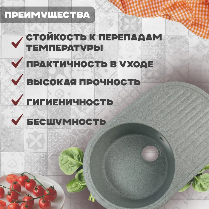 Поверхность изделия матовая, что очень практично в уходе. Мойка имеет высокую прочность и стойкость к перепадам температур.