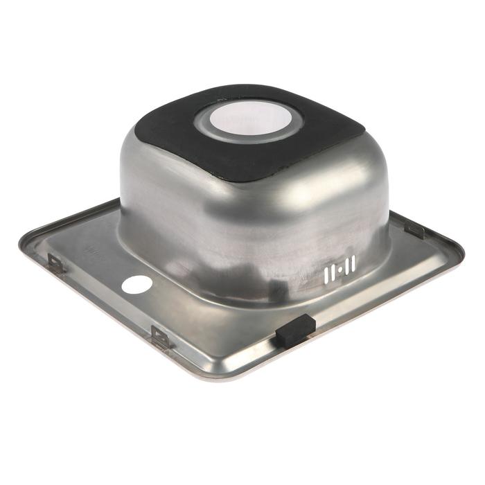 Модель оснащена шумоизоляционной накладкой, которая необходима для того, чтобы подавлять шумы, которые раздаются, когда вода и посуда ударяются о стальной корпус мойки. Накладка находится на внутренней стороне днища, благодаря чему внешний вид мойки не нарушен.