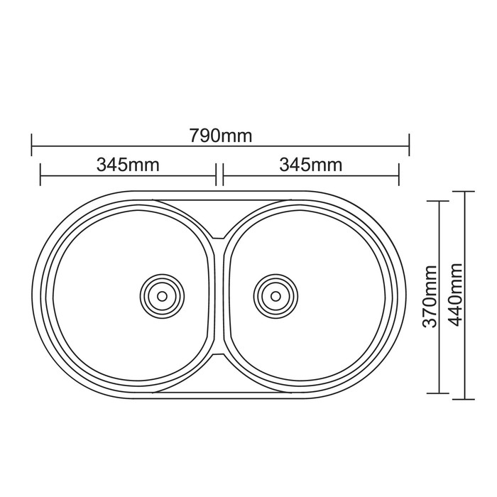 Мойка кухонная Accoona AB4479B, врезная, двойная, толщина 0.6 мм, 790х440х165 мм, глянец — Характеристики
