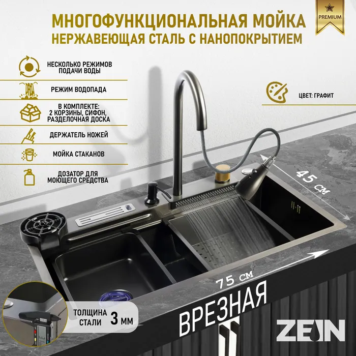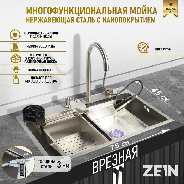 Мойка кухонная Accoona AB4545, врезная, толщина 0.6 мм, 450×165 мм, глянец — Характеристики