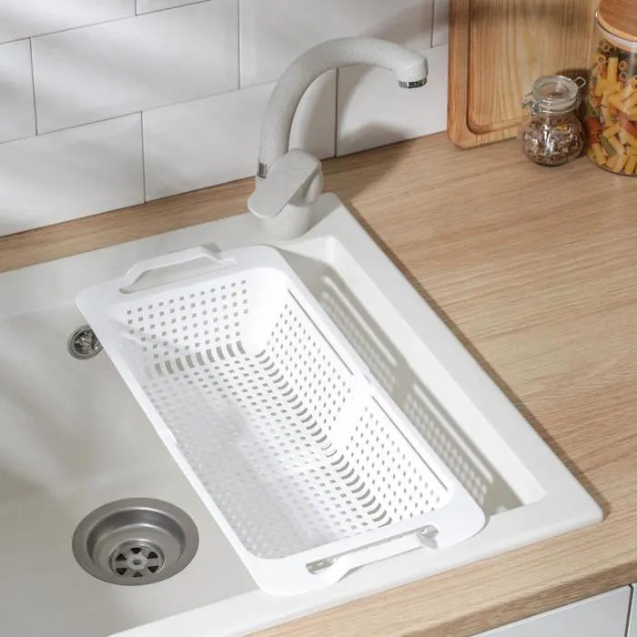 Подходит как прямоугольным, так и круглым мойкам с шириной до 40 см.