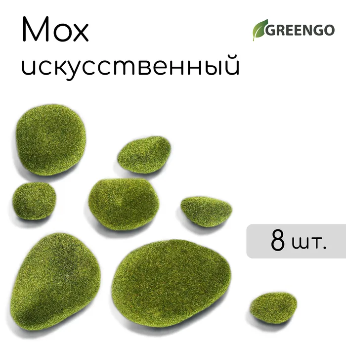Мох искусственный, декоративный, полотно 1×1 м, рельефный, камни, зелёный на чёрном, Greengo — Характеристики