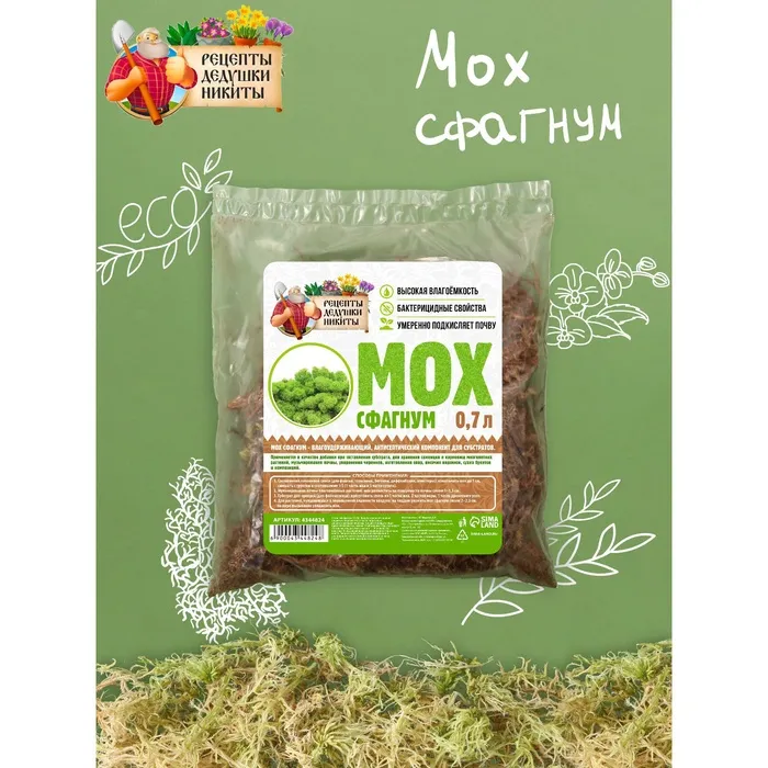 Мох сфагнум "Рецепты Дедушки Никиты" 0,7 л — Характеристики