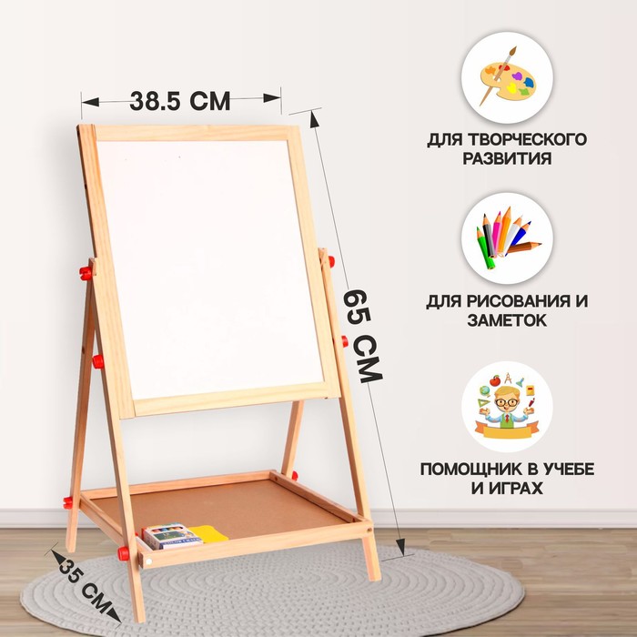 Мольберт детский двухсторонний «Премиум», в собр. виде 65×38.5×35 см, рабоч. пов. 35×40 см — Характеристики