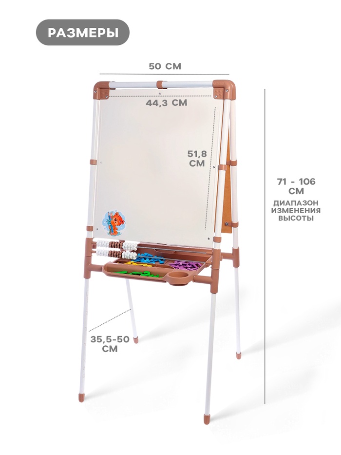 Мольберт детский двусторонний «Доска знаний», регулируется по высоте, бежевый — Характеристики