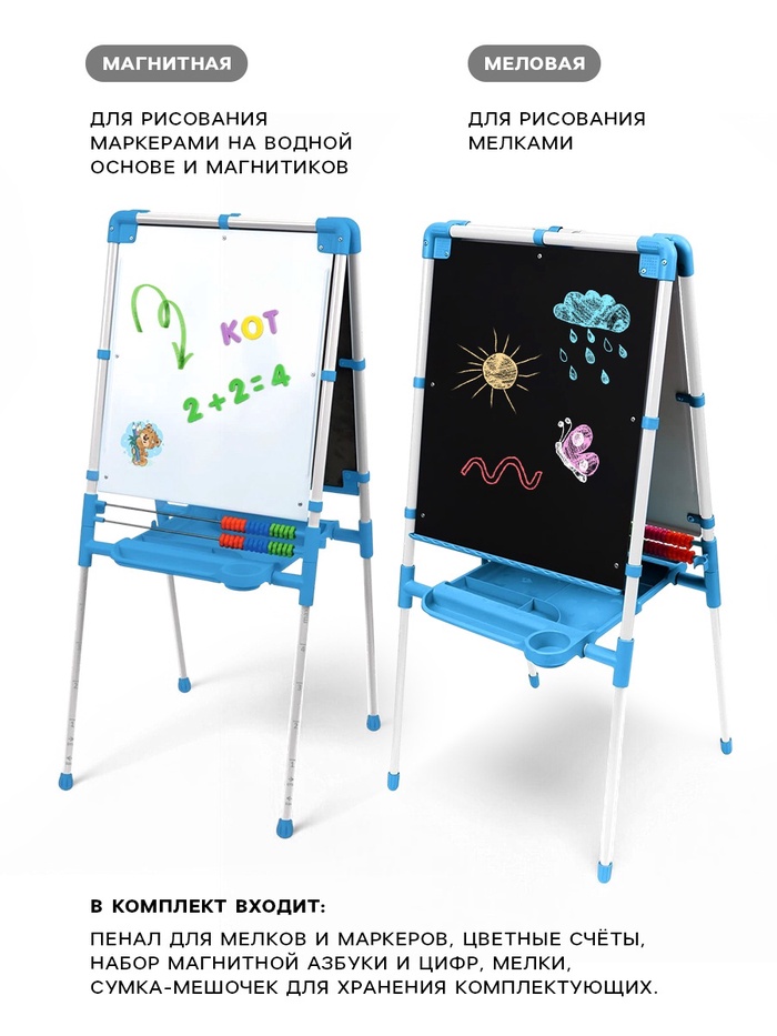 Мольберт детский двусторонний «Доска знаний», регулируется по высоте, учебные принадлежности, голубой — Характеристики